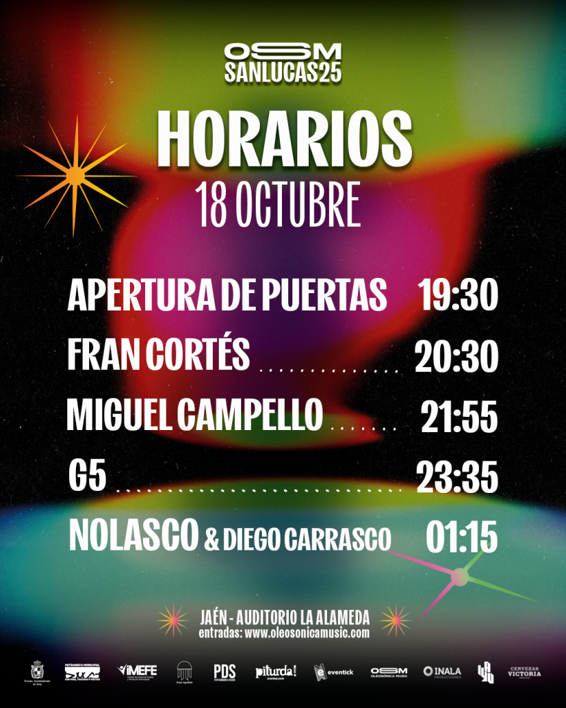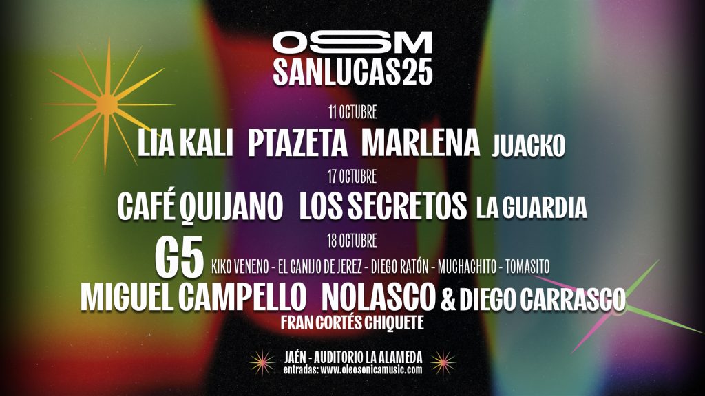 La Feria de San Lucas 2025 se vivió a lo grande con Oleosónica Music. Durante tres noches, Jaén disfrutó de un cartel espectacular con leyendas del pop español, artistas que fusionan flamenco y rock, y nuevas voces de la escena urbana y del pop actual.